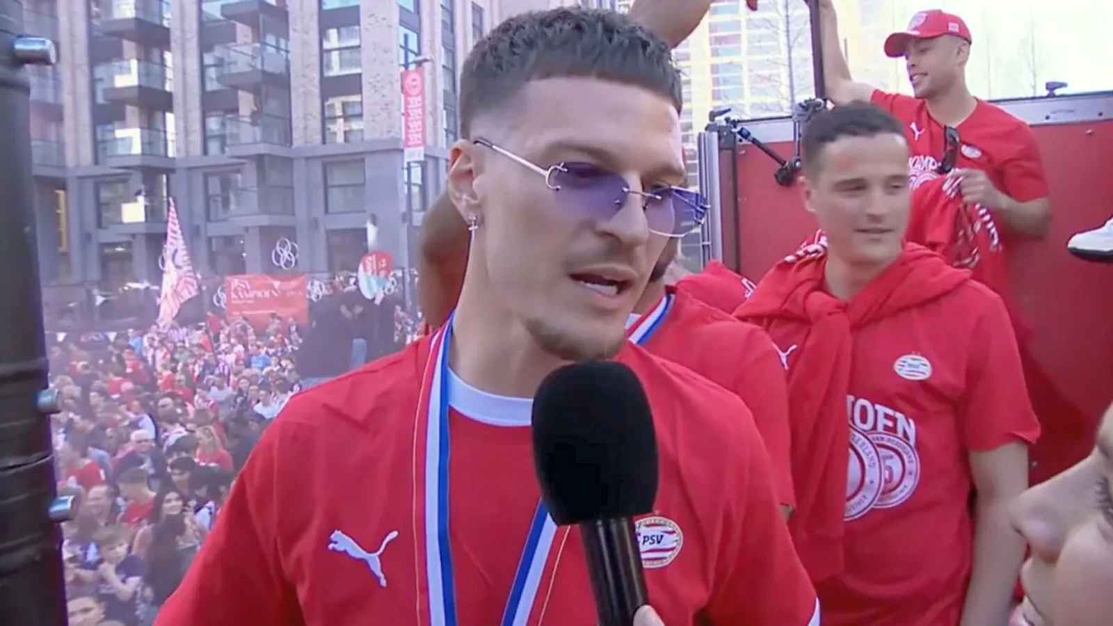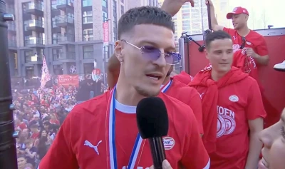 PSV a primit, marți, trofeul de campioană, iar jucătorii au plecat prin oraș cu un un autocar descoperit. Mii de suporteri au ieșit pe străzi să-i vadă pe campioni.