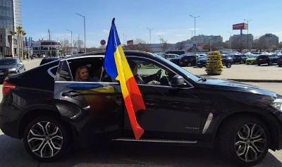 Diana Șoșoacă și-a făcut apariția într-o mașină închisă la culoare fluturând steagul României.