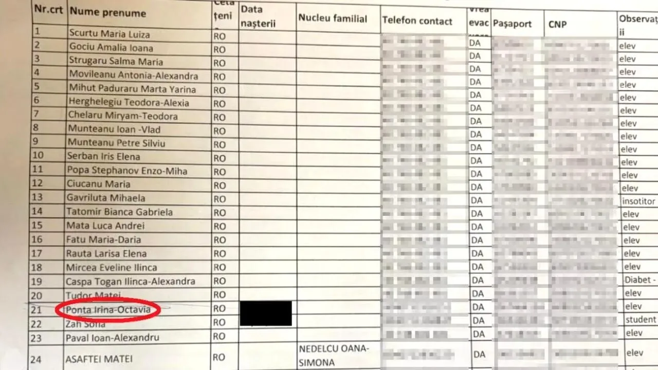 Un document transmis de Consulatul României din Dubai către Ministerul Afacerilor Externe indică faptul că Irina Octavia Ponta, fiica fostului premier Victor Ponta și a Dacianei Sârbu, apare pe o listă legată de zborul de repatriere organizat în 6 martie. Informația contrazice declarațiile oficiale anterioare ale reprezentanților MAE, care susțineau că numele acesteia nu figurează pe nicio listă consulară.