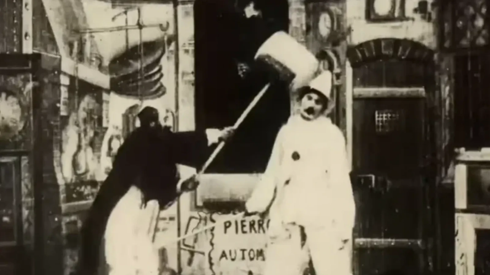Acțiunea se precipită rapid. Clovnul învârte o manivelă, iar automatul mecanic începe să fluture un băț. Dintr-odată, prin magia montajului specifică lui Méliès, figurina crește în dimensiuni, transformându-se într-un bărbat adult uriaș. Robotul începe să îl lovească pe clovn în cap. Furios pe propria-i creație mecanică, Gugusse trântește robotul la pământ și îl lovește cu un ciocan uriaș de comedie. Cu fiecare lovitură primită, automatul se micșorează treptat până când redevine o simplă marionetă, pe care clovnul o distruge complet cu o ultimă lovitură triumfătoare.