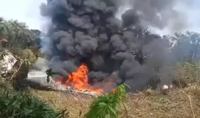 "Asta e tot ce am. Este un avion al Forțelor Aeriene; la câteva minute după decolarea de la aeroport, a căzut", relatează Express US.