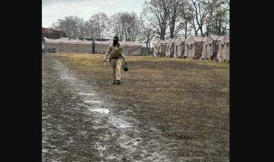 În dimineața vizitei, terenul este noroios, aerul rece și umed, iar ceața se ridică lent, dezvăluind corturile și infrastructura taberei. În stânga intrării se află vehiculele militare și blindatele – patru dintre ele au fost aduse din Franța pe calea ferată, direct din gara militară Charleville-Mézières. În fundal se aud focuri de armă de pe poligonul de antrenament.