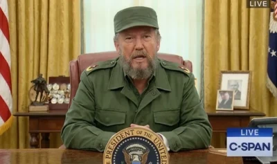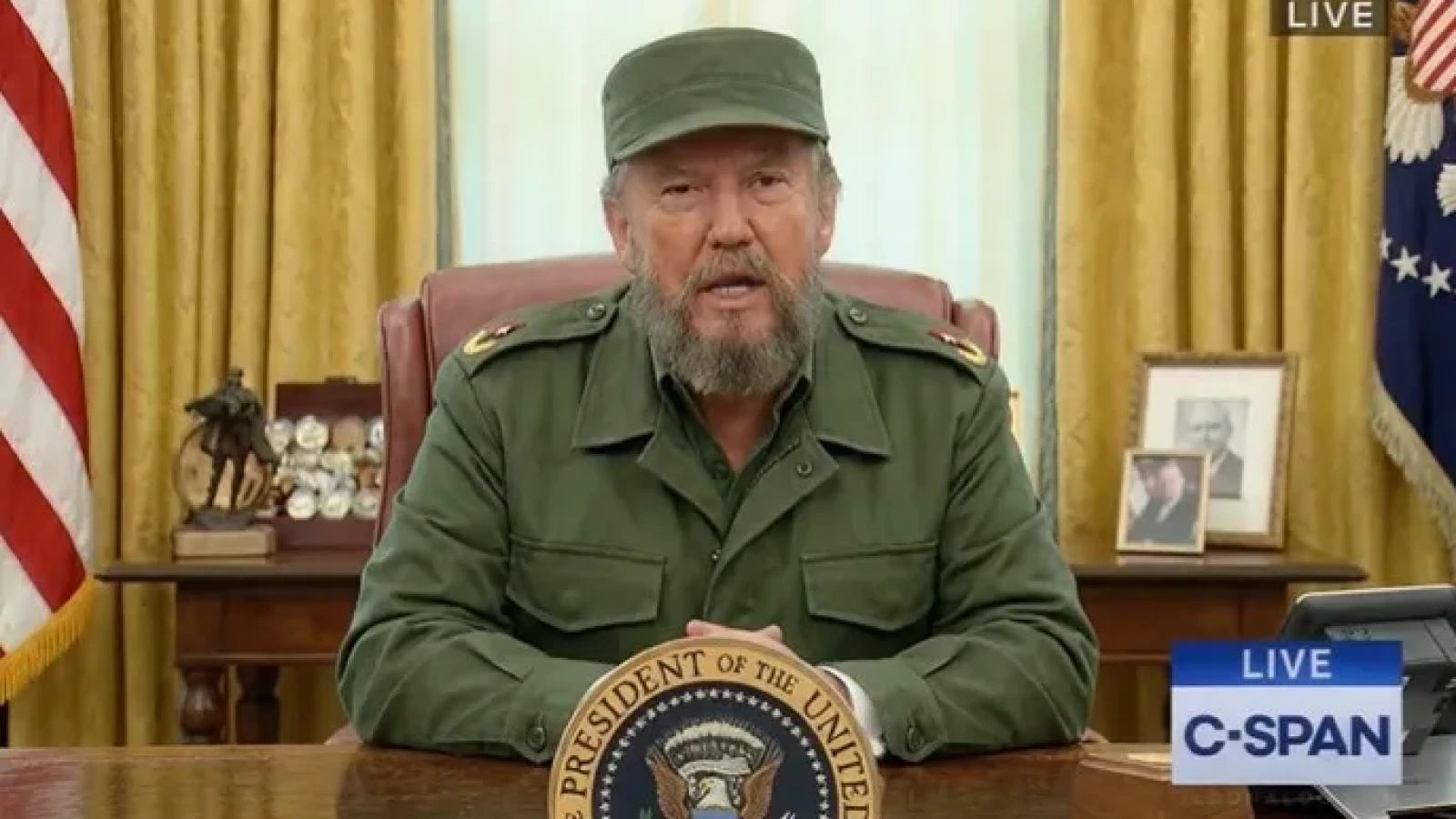 În acest context, videoul devenit viral și preluat de televiziuni înfățișează un Trump îmbrăcat în uniformă militară kaki și cu barbă ca alui Fidel Castro, dar vorbind ca Trump.
