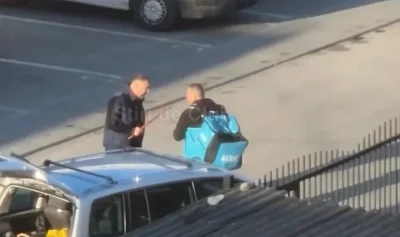 În momentul în care a demarat, acesta a fost la un pas să îl lovească cu mașina pe livrator, care a strigat de durere și a căzut din nou, reușind ulterior să se ridice singur.