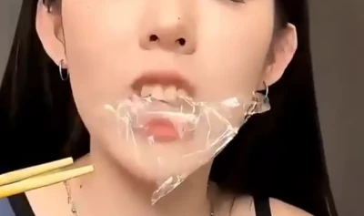 Utilizatorii mestecă energic mâncarea prin folie pentru a simți textura și a trimite semnale de sațietate către creier, însă, în final, resturile sunt scuipate fără a fi înghițite.