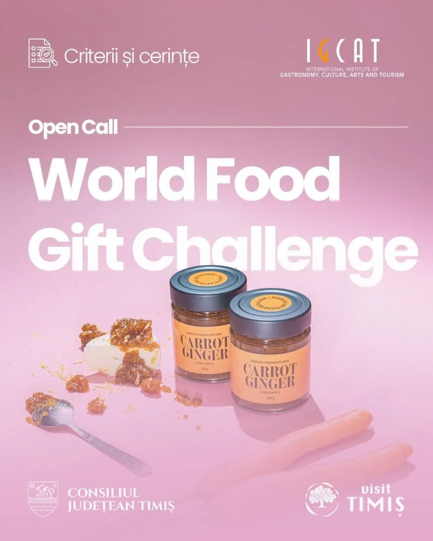 Link criterii și regulament: https://visit-timis.ro/ro/places/cerinte-si-criterii-open-call-world-food-gift-challenge-2026#